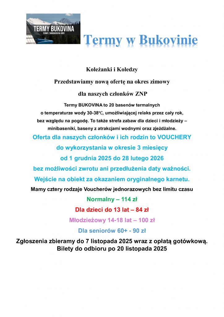 Termy BUKOVINA to 20 basenów termalnych o temperaturze wody 30-38℃, umożliwiającej relaks przez cały rok, bez względu na pogodę. To także strefa zabaw dla dzieci i młodzieży – minibaseniki, baseny z atrakcjami wodnymi oraz zjeżdżalnie.